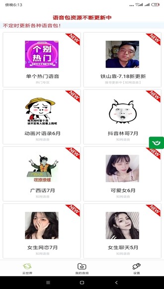 【海量语音素材】-拥有几十万个真人录制的多达10种实时语音特效:机器人,松鼠,女朋友,男老外,还有萌妹子,等你来撩~