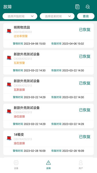 当设备出现故障时自动发送报警消息给用户的手机端及时处理安全隐患问题;