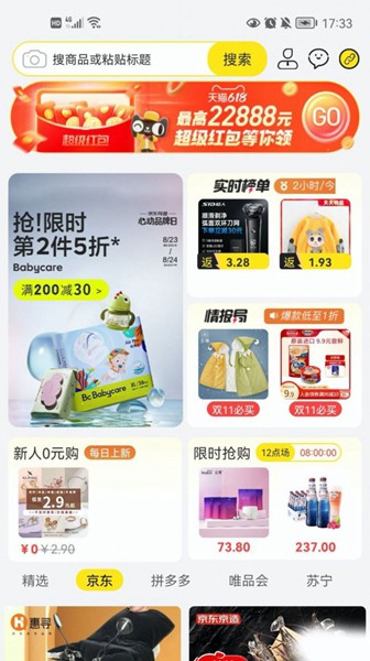 [超级返利]淘宝,天猫,苏宁易宝等电商平台优惠特权免费领取,最高可达90%的商品佣金
