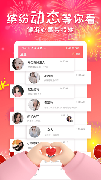 在这里,你可以遇到更多志趣相同的TA,让你们在陌生的城市中寻找爱情;在这里,你可以结识到各种各样的小伙伴,相互关注对方并发起私密聊天,随时随地在线畅享互动,开启属于你的专属恋爱旅程~