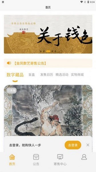 金凤数艺是数字艺术品展示平台,金陵数艺是北京八九五七十二六十网络文化传播有限公司推出的数字艺术品在线欣赏应用软件,金香数艺可以让用户了解更多优质的艺术品信息。金玲数艺在app上还有很多相关的艺术藏品等你来浏览哦,感兴趣的用户快来下载吧!