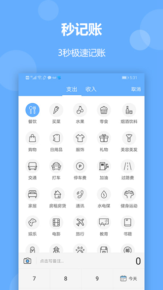 记账精灵app是一款好用的财务统计数据查询类软件,记账精确到月、年以及总收支金额等情况;通过本应用你可以实时查看自己每月的收入或支出状况,同时还支持对每项消费做出详细的数据了解掌握自己的支出情况;此外在记账精灵还可以直接根据需要添加备注内容以便于下次快速找到相关资料并及时处理相关的业务工作需求.