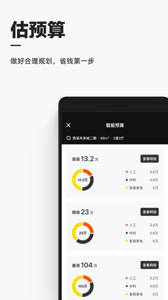 1、【一键定制】根据你的喜好为你量身打造专属家居方案,从此告别繁琐的装修流程。