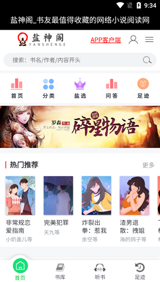 盐神阁小说app是一个为喜欢小说的朋友打造的平台,这里有各种各样的小说资源可以选择阅读哦,并且还有很多不同的榜单推荐给您来参考哟,在这里用户不仅能够找到自己喜欢的书籍进行在线查看和下载!感兴趣的小伙伴快来西西下载吧~