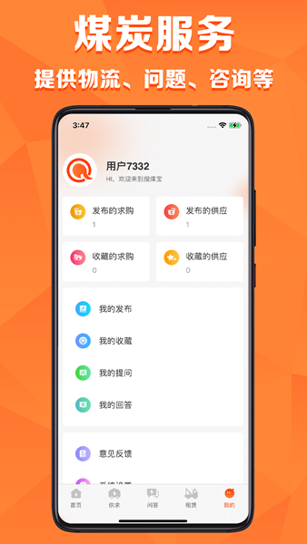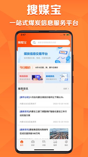搜煤宝app是为煤炭行业打造的手机交易平台,这款软件可以提供最新的煤炭行业的信息资源服务功能,在搜煤宝app上用户可以直接查看各种物流订单状态以及历史数据等等!