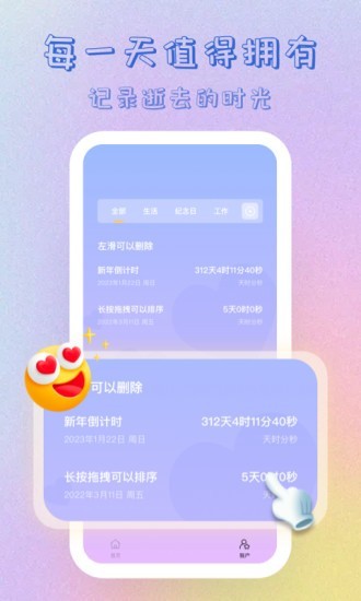 365倒计时365倒计时插件app是一款非常实用的日历软件,这款软件能够帮助用户记录各种重要的日子、纪念日等等内容。软件还拥有倒计时提醒功能,让用户可以设置好提醒时间后自动进行倒数提醒操作,同时还可以根据自己的喜好来调整背景颜色和字体等元素信息了!