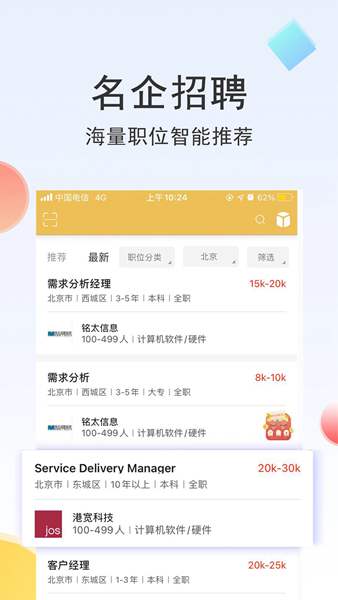 聘多多这里有各种各样的人才信息,用户可以在这里找到自己喜欢的工作。你可以根据自己的喜好进行筛选寻找合适的工作或者职位哦。同时平台上面的岗位都是真实靠谱的,确保大家求职者能够安心找工作,遇到心仪的工作还可以直接投递简历等待招聘方面试。