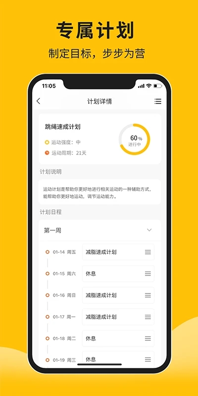 4、“心率监测”:可实时监测用户的跳绳、跑道热量及睡眠质量,精准记录每一次锻行的数据,根据用户的不同需求定制个性化的训练计划。