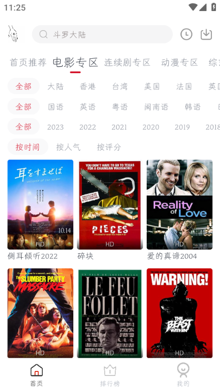 3、平台上的影视分类十分细致,包括动作片、喜剧片以及爱情片等不同的题材,