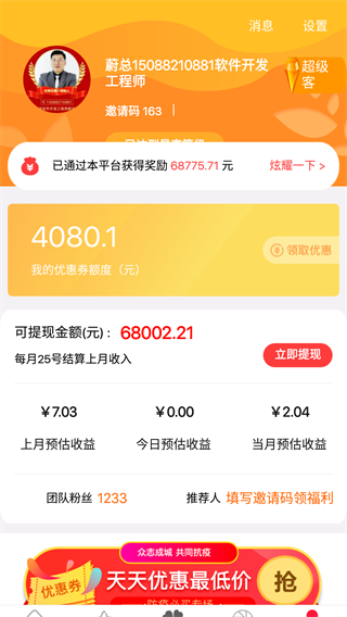 邀请好友一起赚钱。