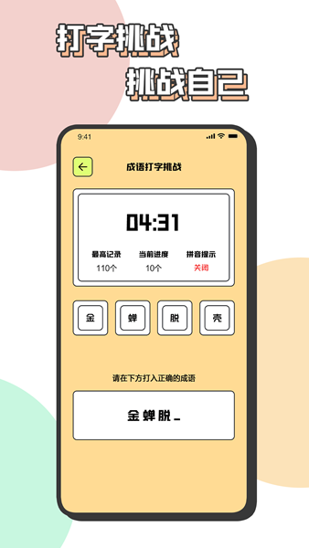 金山打字宝是一款非常有趣的打字游戏,这款软件可以让用户在手机上进行打字训练。该软件内置了多种不同的打字模式和挑战方式,能够帮助玩家更好的提高自己的打字速度,快来下载使用吧!