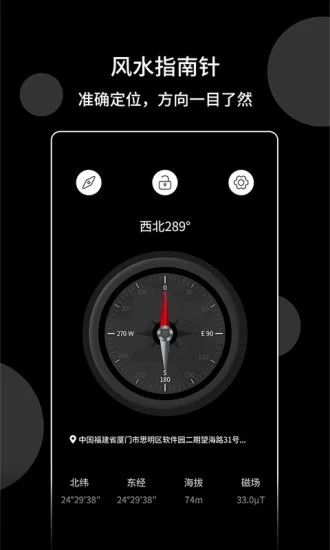 风水指南针app是一款好用的户外旅游必备的指南针工具,使用其能够快捷进行各种天气信息查询。软件中支持经纬度精准查看,快速了解各个位置,非常方便简单实用。需要的用户赶紧看看吧!