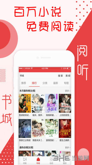 3、男女频分类齐全,都市言情,武侠仙侠,青春校园,穿越架空,惊悚悬疑,历史军事,耽美同人,官场权势,职场竞技,科幻灵异,经典图书等各类小说应接不暇。