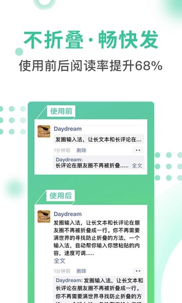 发圈输入法是一款专为微信朋友圈设计的输入法软件,支持多种聊天方式和表情包使用功能。通过该应用可以轻松地将自己喜欢的文字转换成表情符号、表情符号等内容!同时它还支持自定义主题背景设置哦!快来下载吧。