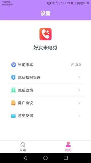 好友来电秀app是一款很受欢迎的来电提示铃声、彩信等个性化的安卓应用工具。你想要的都可以在这里找到哦!每天实时更新最新的热门来电壁纸资源内容让你一键切换到最炫酷的来电界面以及各种各样的风格;并且还支持自定义diy操作系统为你提供更多的服务哟!超多不同种类的用户千万不要错过哦!快来下载吧!