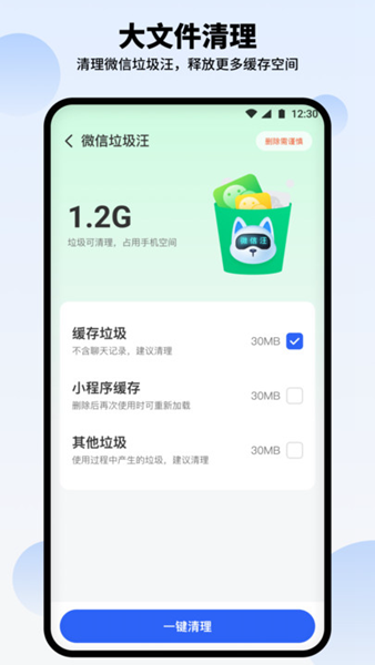 汪崽清理大师是款相当不错的手机内存清理工具。通过开启用户们就能快速获取我们的最新下载文件和管理自己手机中的所有图片、视频等内容,方便快捷的使用我们可以节省更多空间进行垃圾的清理哦,需要的朋友不妨速速下载体验吧!