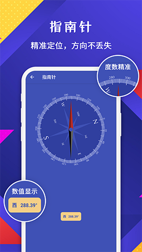 通过打开指南针功能查看周边环境是否倾斜,可实时定位并告诉你方向。