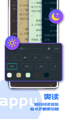 2、智能排版优化:流畅舒适的仿真的翻页效果及自定义阅读设置,支持本地阅读方式导入。