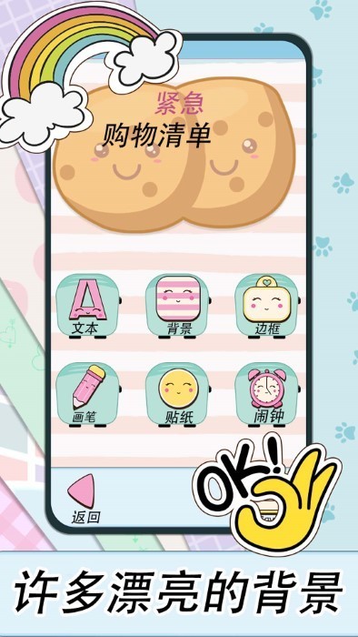 【甜蜜日记】超多可爱的贴纸和背景素材,让你在写日记的时候充满欢乐,并且还可以自定义文字字体以及颜色、大小等内容!