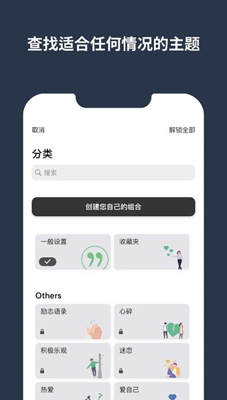 自定义类别与标签系统:爱情、友情、亲情、爱意、事业、旅行、校园......