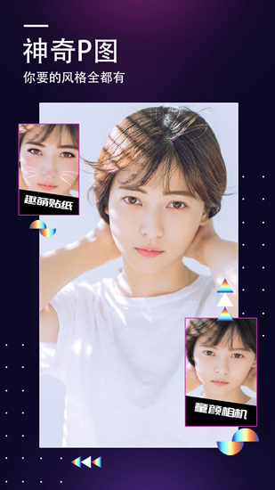 1.【美颜滤镜】智能识别脸部表情并调整五官,更可自定义更换背景。