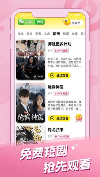 剧爱看短剧app是一款安卓免费看短剧的应用软件,软件中有着海量的优质影视内容等你选择观看体验,用户可以在线搜索感兴趣的内容进行追剧操作。高清流畅的画质为你提供超多乐趣轻松观剧哦,对软件感兴趣的话不妨点击下载试试!