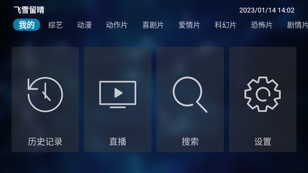 飞雪留晴电视盒子版是影视观看软件是专门为安卓设备量身定制的追剧软件。这款APP提供了海量的影视资源,涵盖了各种类型的电影、电视剧、综艺节目等;并且更新速度快,能够第一时间给用户提供最新的影视资讯和内容
