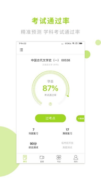 文鹿自考学院app是专为自学考试打造的手机软件,在这里能够轻松学习。专业的题库内容可以帮助用户快速进行练习题目操作使用。支持直播课程和在线答疑服务功能让考生更好的复习知识点、提高成绩。需要的用户赶紧看看吧!