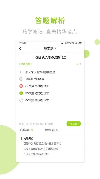 历年真题:提供最新、最全的自考真题答案解析,涵盖了各类考试科目,让你随时随地刷题。