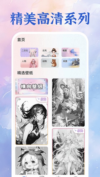 包括美食、旅行、宠物、明星、动漫游戏、汽车、风景等多个领域中精选出最适合你的壁纸种类。