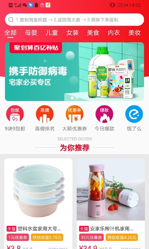在淘宝上购物时,可以用它来获取优惠券和折现,帮助你快速省钱。同时我们还提供了多种支付方式供你选择,让你轻松完成各种交易过程。不仅如此,我们还提供了一系列促销产品推荐给大家浏览查看;更有海量优质商品任你挑选下单购买,