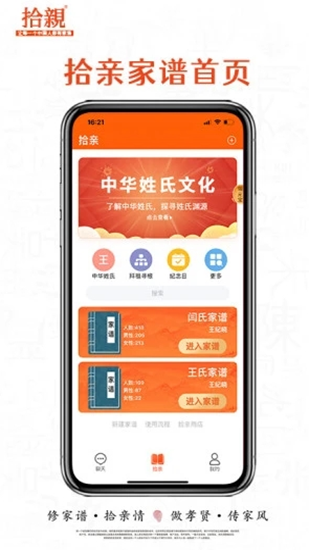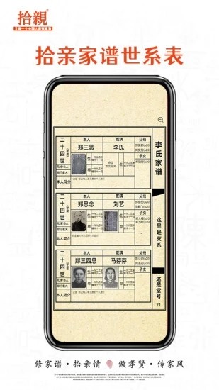 “拾亲”APP是一个集“家谱收藏、分享、交友、互动”于一体的综合家谱平台,致力于打造一个集“家谱共享、家谱交流、家谱交易、家乐生活”为一体的家谱平台,为用户提供便捷的服务及优质体验。通过拾亲APP,用户可以在手机端查看家庭成员信息、家人照片、家族成员联系方式等个人动态,还可以在线进行聊天沟通与购买家谱产品;同时,通过“家拍”或“拍照”的方式上传照片至云空间,将照片存储在相册内,再也不用担心丢失家品、遗憾了。此外,“发现”模块也为广大的家庭朋友提供了一个方便快捷的生活消费入口。感兴趣的用户欢迎下载体验!