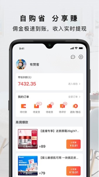 有赞客是专为有赞客用户打造的手机购物分销平台,可以帮助商家轻松管理自己的销售店铺。这里有着非常多的功能提供给用户使用体验,让大家可以在线上进行商品推广、订单核销等等操作.