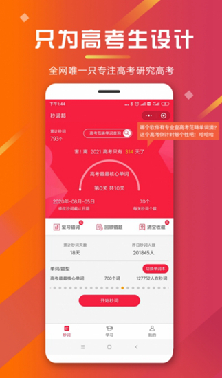 秒词邦app是一款十分好用的手机英语单词学习软件,这款软件可以为用户提供各种不同的在线知识内容哦,在秒词通中还有专业的老师为你解答各种问题等等!