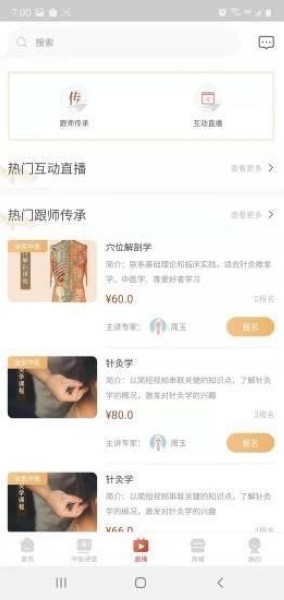 中医课堂:提供中医教学视频课程供您观看学;包括直播讲座及录播节目收看回放听;包括中医基础学习、中医护理、穴位辨别、处方管理、常见病症指导等;