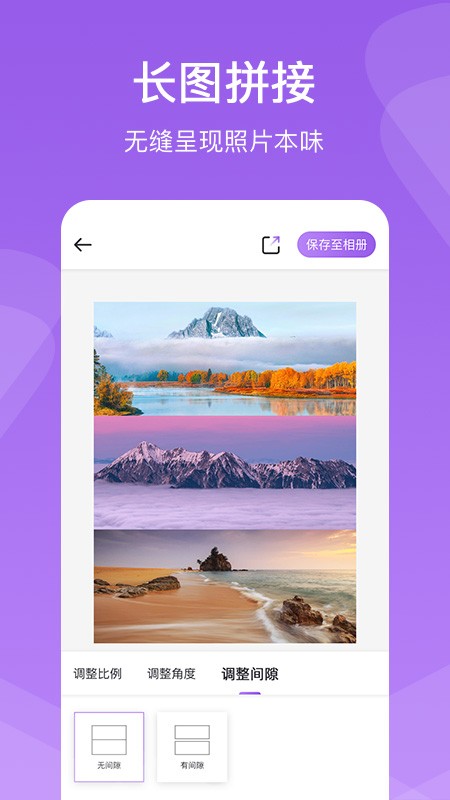 自由拼图:支持横向、纵向、圆角拼图,同时支持竖屏拼图。