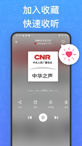 3、【收藏喜爱】:遇到适合自己的电台还能加入收藏,下次再听也不怕丢失啦。