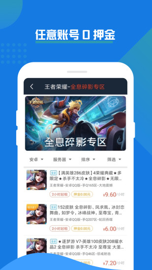 乐享租号是款简单方便的手机租赁软件,开启之后我们可以快速进行各种游戏账号和选择适合我们的操作。想要免费使用本工具的朋友不妨速速下载体验吧!