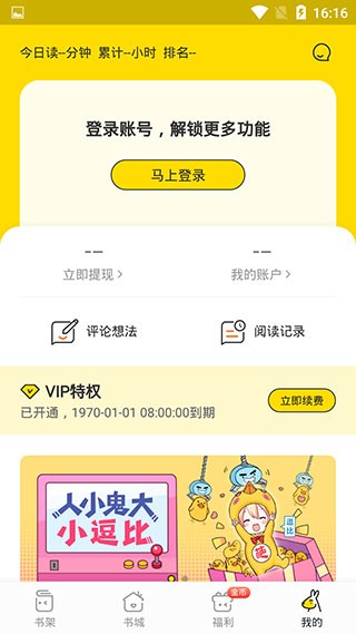 新人专享、每日签到、阅读小说还能赚零花钱!邀请好友一起看书,每天都有惊喜!现金红包、福利奖励领不完,快来领取~