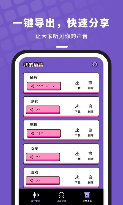 吃萝莉音调高音速变小黄人大叔搞怪整蛊你的好友。吃青姐妹们都喜欢听你的声音,你还在等什么呢?赶紧下载体验一下吧!