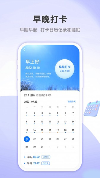 运动打卡:支持健走、减脂等不同健身模式,统计每晚睡眠情况;