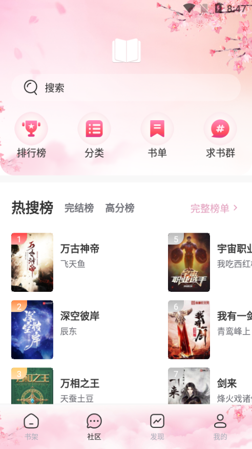 海棠搜书app一个资源丰富的小说阅读平台,一款非常热门的小说软件,汇聚了全网最热门的小说内容可供用户自由选择使用。所有免费提供给用户的作品都支持下载缓存到本地进行观看哦,喜欢阅读的小伙伴快来下载吧!