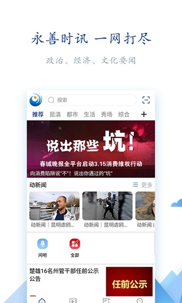 重庆融媒是为永善县本地居民提供便捷的生活服务类软件,通过软件用户可以随时随地的了解最新发生的大事。有超多的新闻资讯让大家足不出户就能了解到各种大小事情的发生情况以及热点内容等!快来下载吧