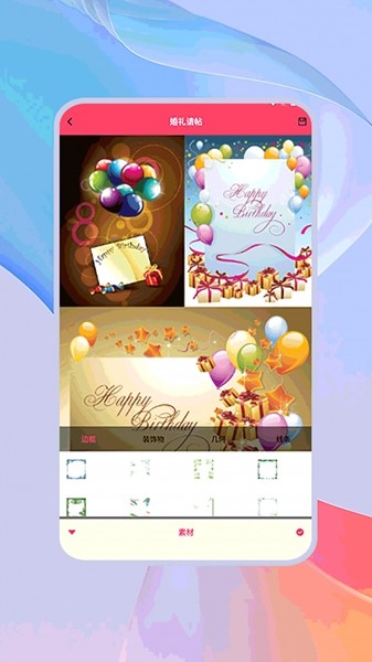 -提供丰富的素材资源库(如婚礼、生日等)以及海报背景;