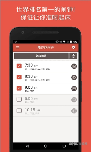 睡你妹闹钟app是一款非常不错的闹钟软件,能够在手机上轻松设置闹钟铃声和闹钟时间。用户可以自定义起床的音效以及闹钟铃声!欢迎大家来绿色资源网下载使用哦。