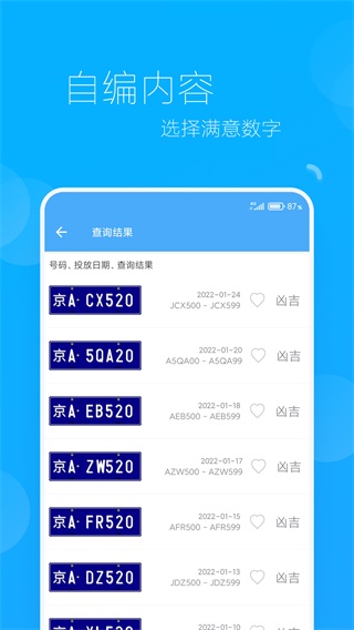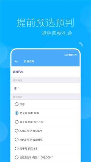 车牌选号助手车主选号助手是一款可以使用手机进行车辆抢号的软件,在这里用户们能够找到超多优质的汽车服务功能的使用体验。在这款软件上用户们就能够直接通过手机对自己的汽车进行定位和查询到当前的车辆状态信息等内容哟,超级方便实用。