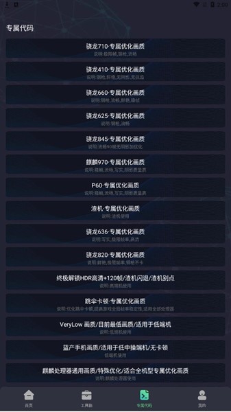 一键开启对应游戏或应用的画质优化,分别为:骁龙王座+麒麟之类的,分别为: