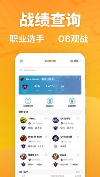 -提供电竞选手的资料库,全面了解战队和选手数据,对阵胜负一目了然。