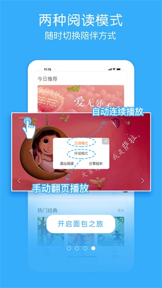 2、丰富的阅读资源:面包绘本故事拥有大量优质的书籍资料,涵盖了国内外知名的教材版本,确保给宝宝一个快乐的童年。
