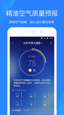 华为原装天气app是一款功能全面、使用简单的应用程序。该软件不仅提供了准确的天气预报服务,还能提供24小时的天气变化提醒与未来7天的天气预报内容!无论您身在何处都能及时了解天气情况,同时它还支持实时监测空气质量指数,让您提前预防雾霾污染,为健康出行做好充足准备,有需要的朋友赶紧来下载吧。